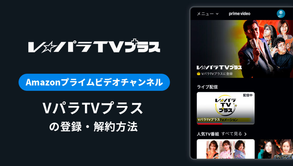 このページでは、Amazonで視聴ができる「VパラTVプラス」の料金や無料体験、チャンネルの登録、解約方法について詳しく解説していきます。