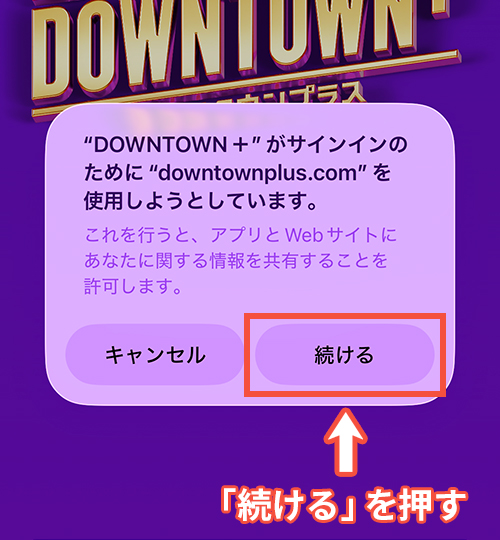 ポップアップが表示されるので「続ける」ボタンを押します。